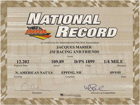 Marier #1899, vous êtes le nouveau détenteur du record IHRA D/PS…